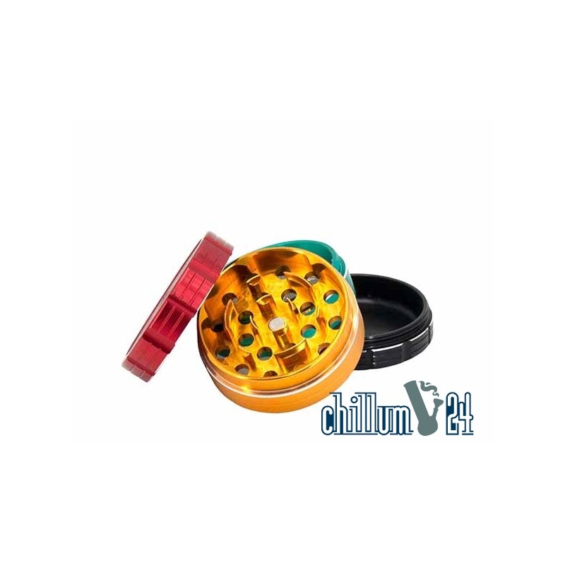 4-tlg. Aluminium Grinder mit Sieb und Magnethalterung im Deckel