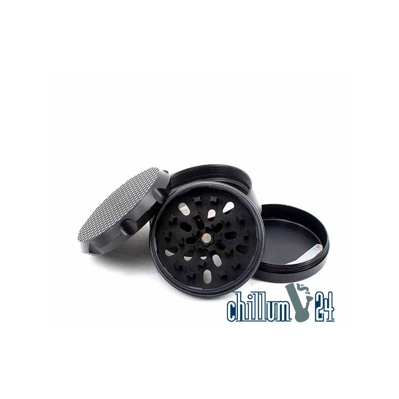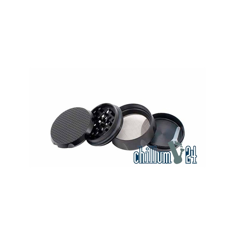 4-teiliger Grinder mit Griffkerben in edlem Metall-Gehäuse inkl. Pollenschaber - Ø ca. 60 mm