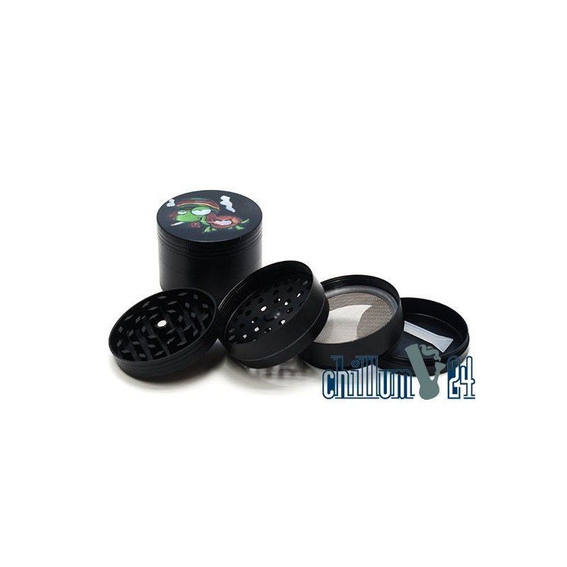 Dieser 4-teilige Aluminium Grinder aus der Animals Serie ist mit Magnethalterung im Deckel, Sieb & Pollenfach, inkl. Pollenschaber ausgestattet.