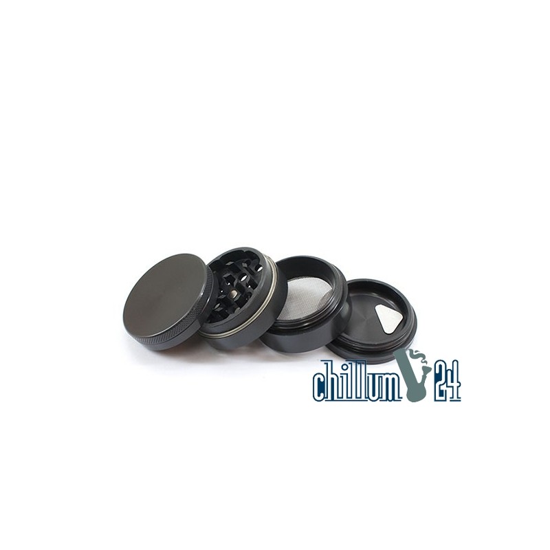 4-teiliger Grinder aus Aerospace Aluminium spezialgehärtet (Hard anodised - Eloxiert), Höhe ca. 40 mm, Ø ca. 39 mm