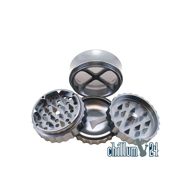 Dieser Aluminium-Grinder macht mit den Pyramidenzähnen jedes Kraut klein.