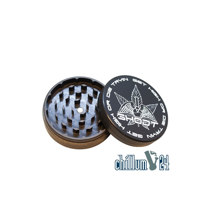 2-teiliger Grinder aus Aerospace Aluminium spezialgehärtet (Hard Anodised - Eloxiert), Höhe ca. 21 mm, Ø ca. 62 mm