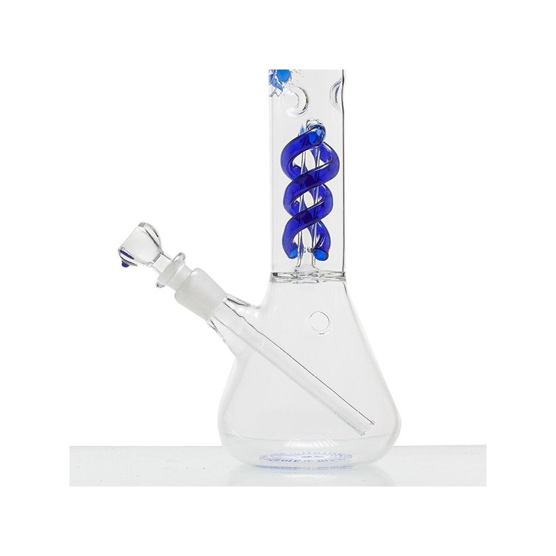 Handliche Glasbong mit Spiral-Percolotor, 18.8er Chillum & 14.5er Siebkopf - ca. 36,5 cm hoch