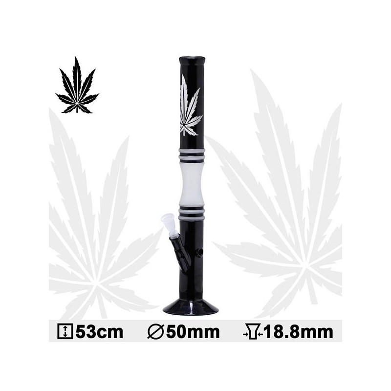 Diese gerade Glasbong hat eine schwarze Farbschicht