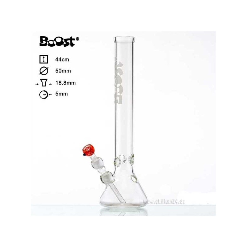 Eine stabile Glasbong mit Boost-Logo, Eiseinstichen und 18.8er Siebkopf.
