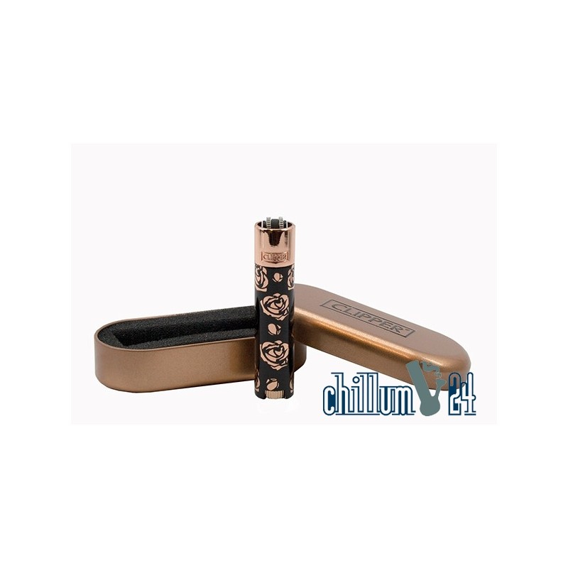 CLIPPER Large Metall-Feuerzeug "Rose of Rosegold" in einer Metallbox