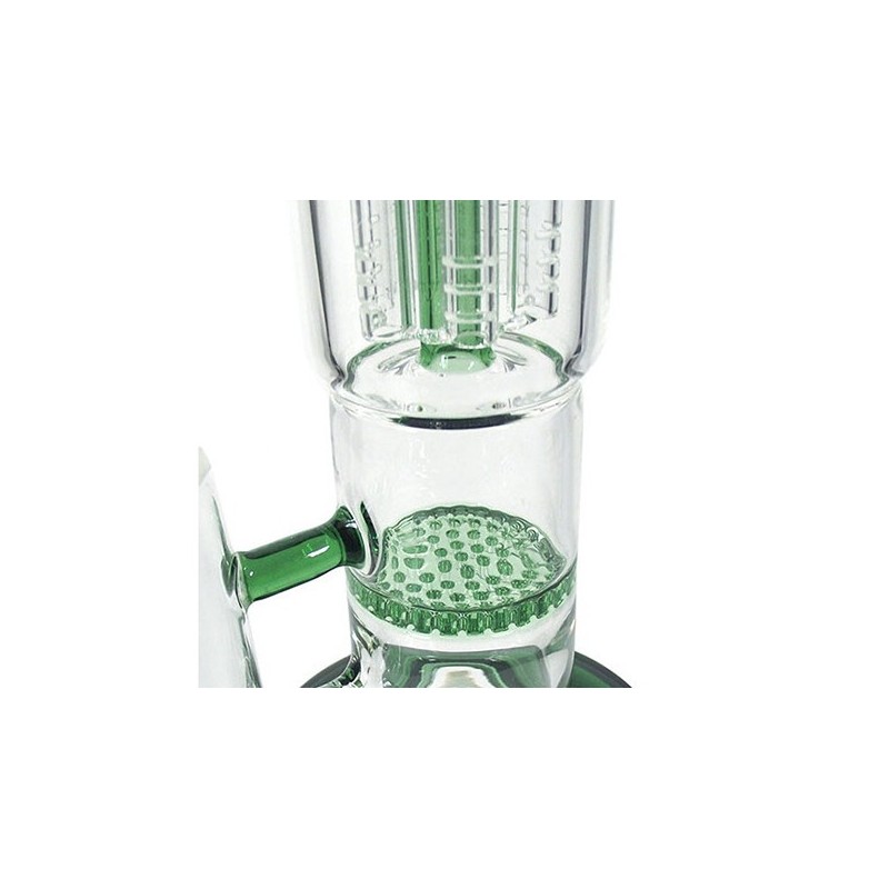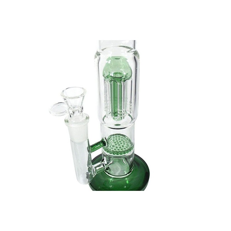 Stabile Ice-Bong aus 5 mm dickem Glas mit 14.5er Siebkopf, inkl. Honeycomb- und 8-Arm-Percolator für gute Filterung, Höhe ca. 30cm