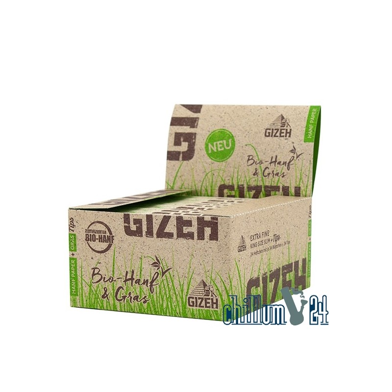 Box 24x Gizeh Bio-Hanf King Size Slim Extra Fine 34 Blatt + 34 Tips