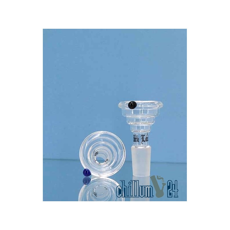 Black Leaf 14.5er Schliff Glas-Siebkopf mit Stufen und farbigem Wegrollschutz, Farben können variieren.