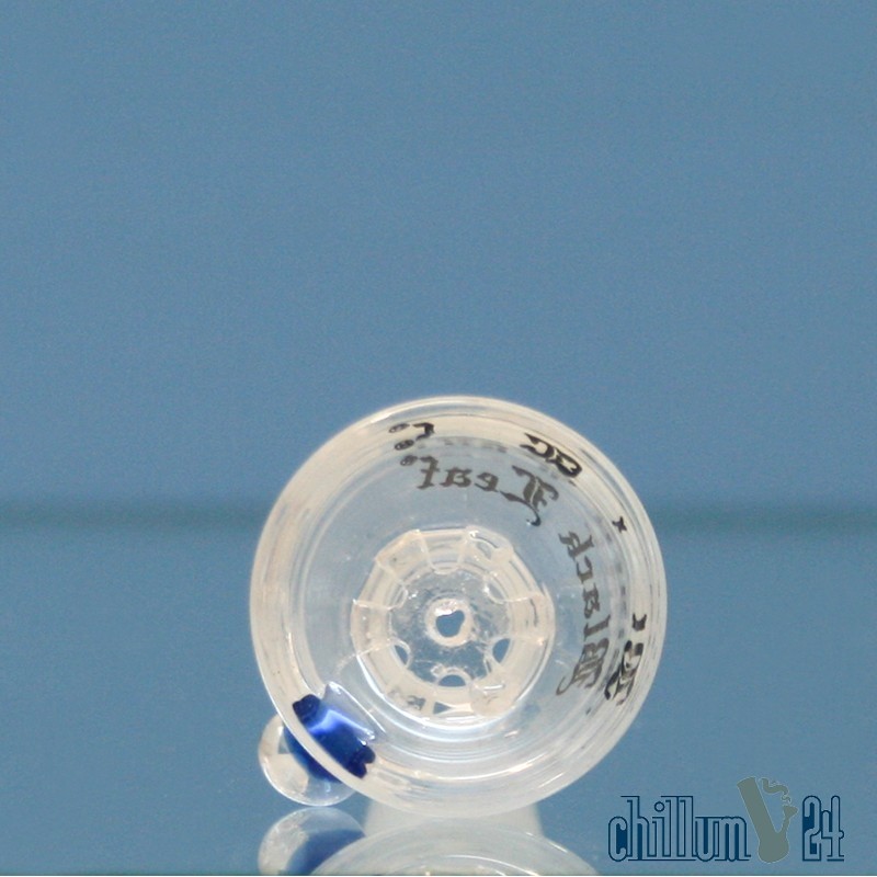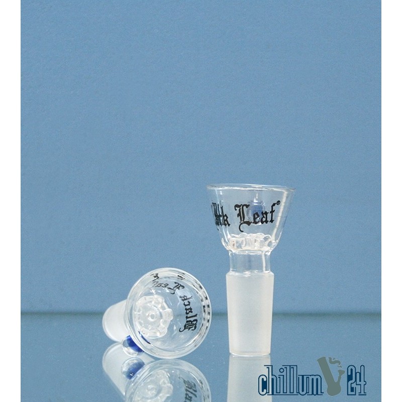 Black Leaf 14.5er Schliff Glas-Siebkopf mit integriertem Glassieb und blauem Wegrollschutz