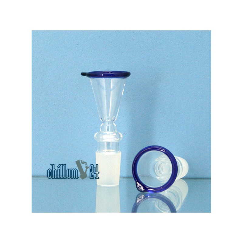 Glassteckkopf Sieb mit blauem Rand 18,8er Schliff, Höhe des Trichters ca. 3,5cm