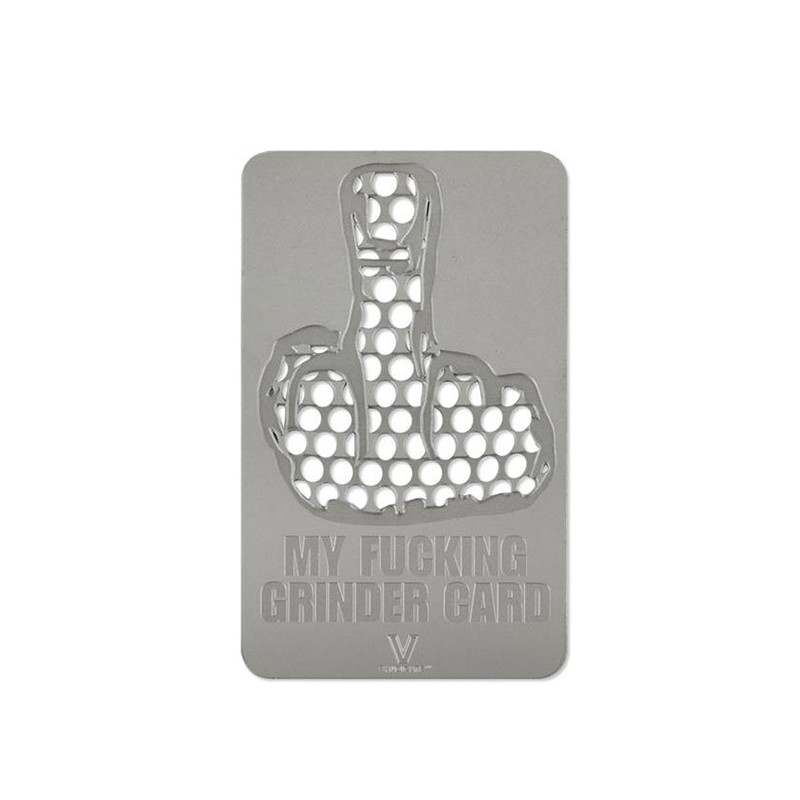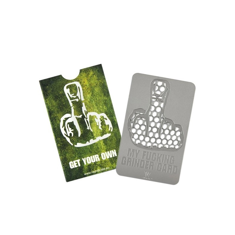 Stabile Grinder-Card im Kreditkartenformat, fingerschonend gefräst, inkl. passend bedrucktem Papp-Etui