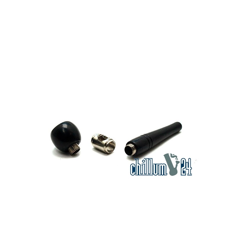 Diese kleine schwarze Holzpfeife liegt Dank ihrer Form sehr gut in der Hand und lässt sich komplett auseinanderschrauben