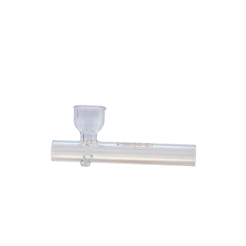 Handliche Glaspfeife mit Siebkopf, Kickloch & goldenem Schriftzug