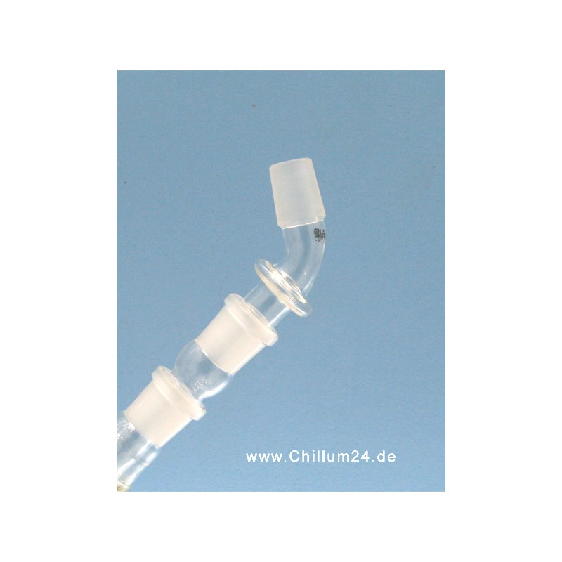 Gewinkelter Glasadapter aus stabilem Laborglas für Glasbongs. Produkt Details: Farbe: klar Material: Borosilikatglas Schliff: NS 18,8/18,8mm