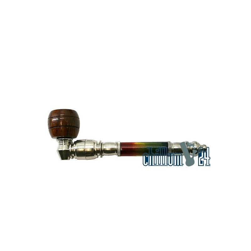 Pur-Pfeife Metall mit Kunststoffhülle & Holz-Siebkopf - Länge ca. 13,5cm