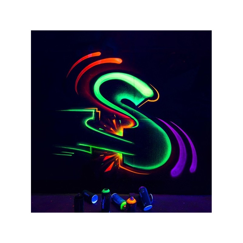 Die Infra Colors der Montana Black Reihe sind fluorizierende Sprühlacke, die unter UV-Einstrahlung leuchten.
