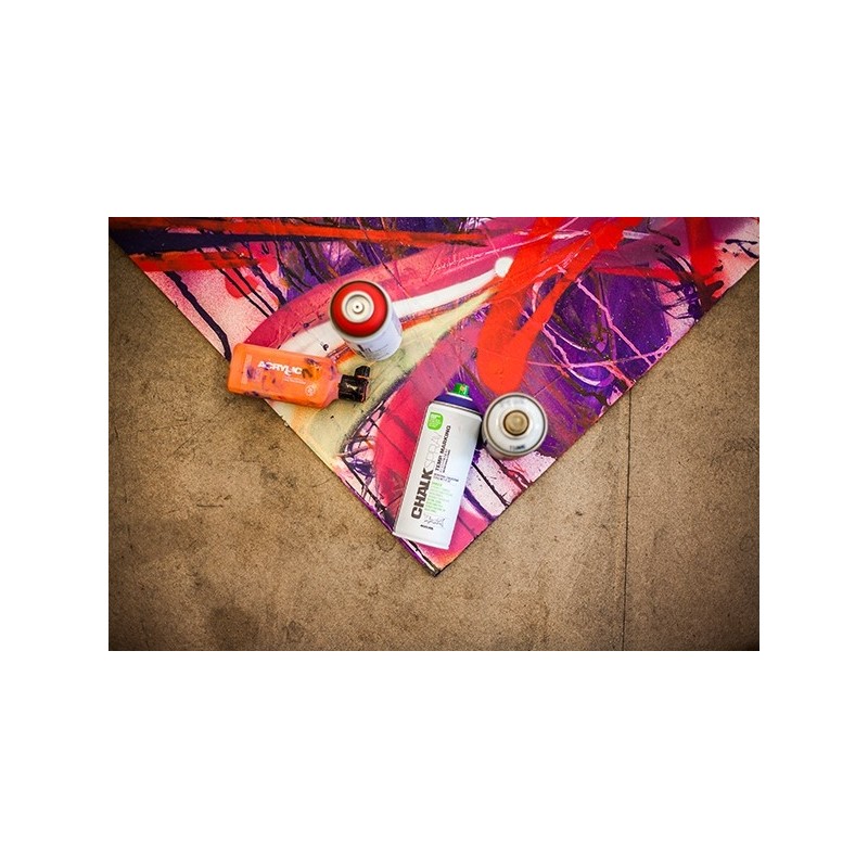 Das Montana CHALKSPRAY ist ein kreidebasiertes Farbpigmentspray in 10 kräftigen, matten Farbtönen.