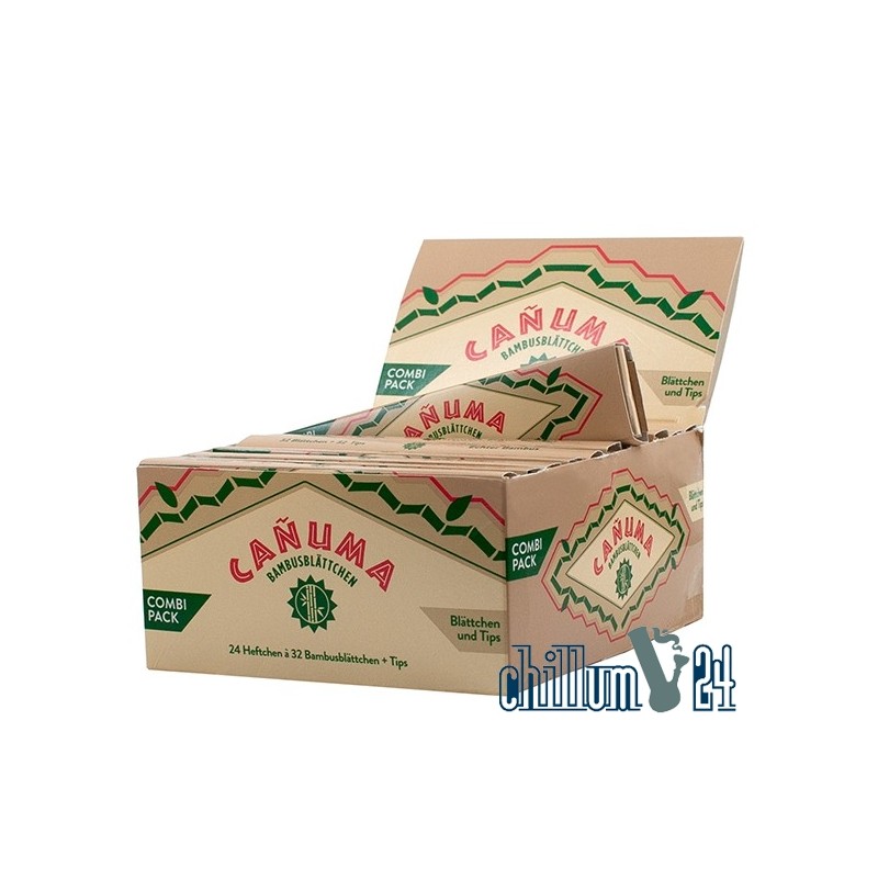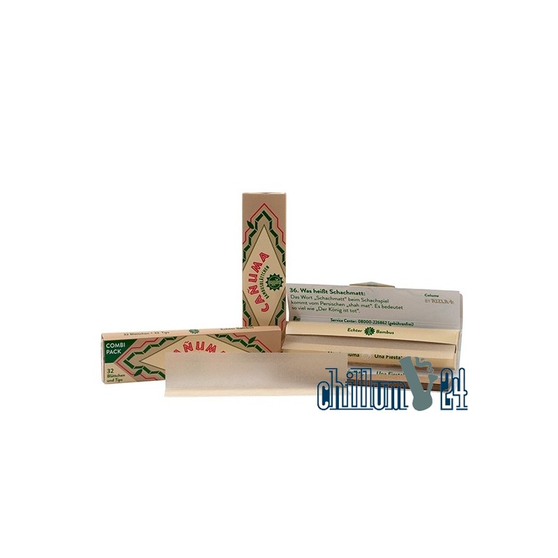 Box 24x Canuma Bambuspaper King Size Slim mit Tips 32 Blatt