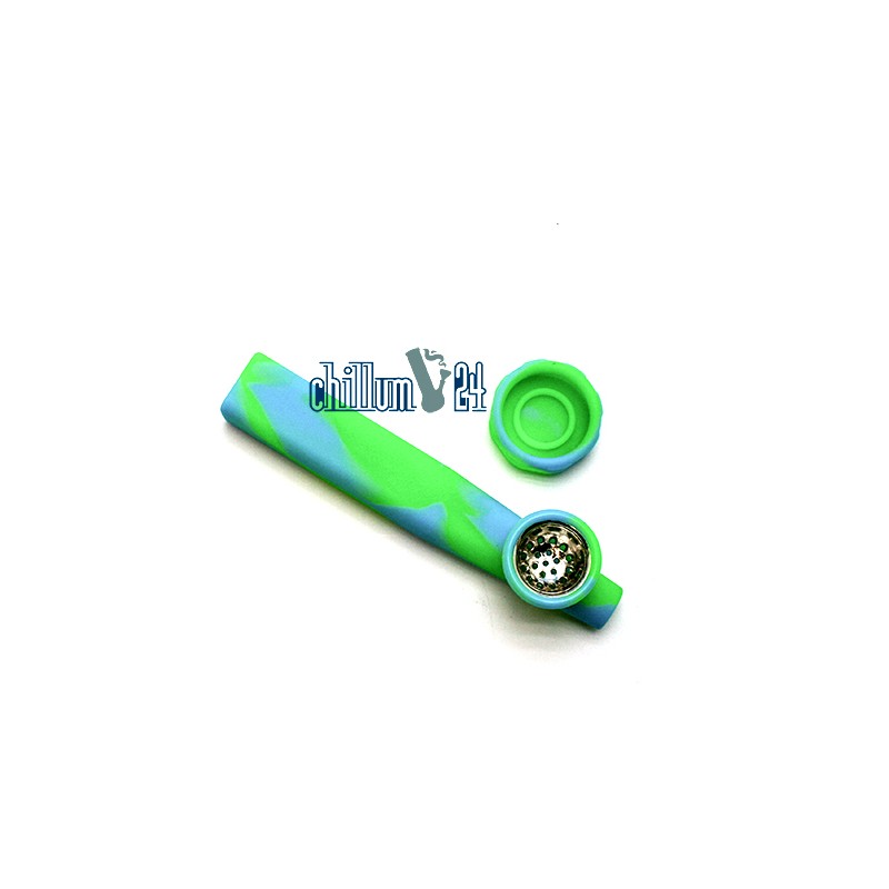 Jelly Joker Silikon-Handpfeife Grün-Hellblau mit Edelstahlsieb