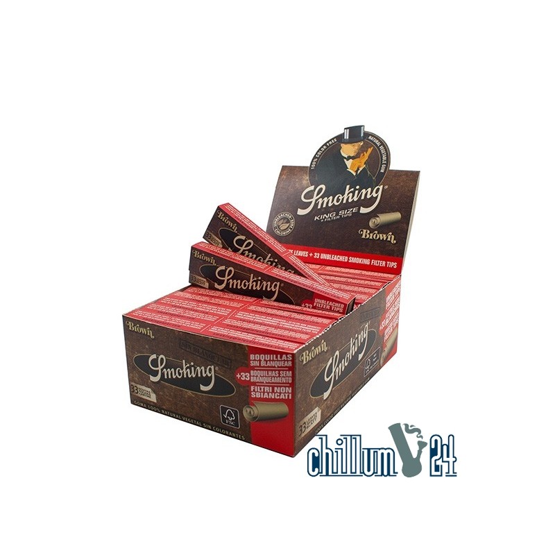 Box 24x Smoking Brown unbleached King Size Paper u. Tips