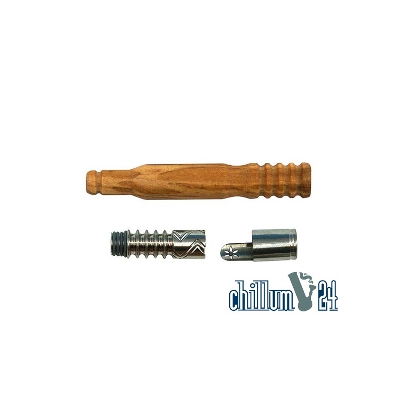 Dieser manuelle Pen-Vaporizer ist hergestellt aus Edelstahl und Olivenholz.