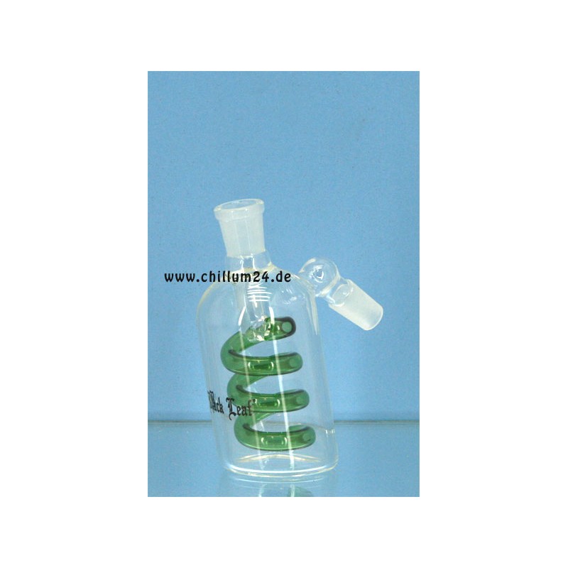 Dieser Black Leaf Vorkühler hat einen eingebauten Doppel-Spiralperkolator in grün und ist am Boden angeschrägt. Adapter 18.8 - 14.5 bei Bedarf bitte separat mitbestellen. Höhe: 120mm Durchmesser: Ø 50mm Schliff: NS 2x14,5mm InsideCut