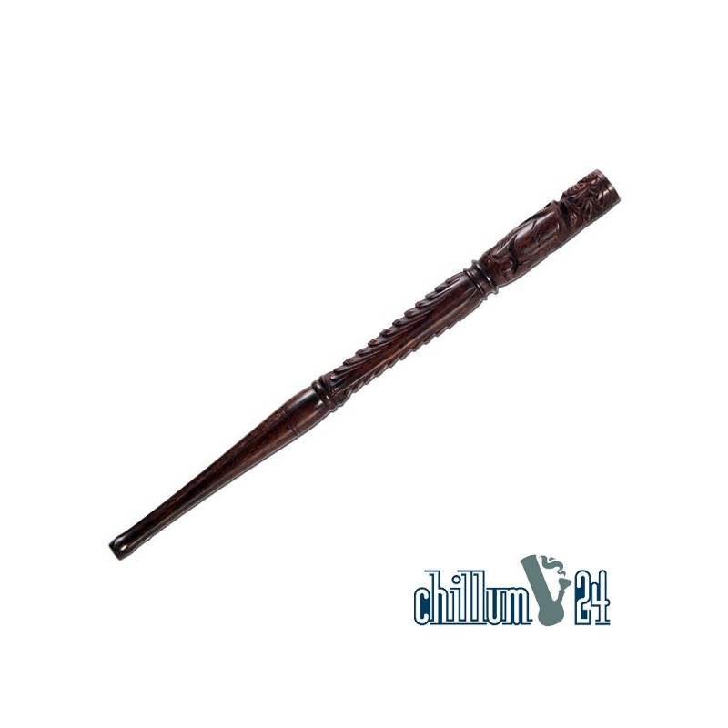 Gedrechselte Zigarettenspitze aus Shishamholz mit schönen Schnitzereien und konisch abgeflachtem Mundstück.